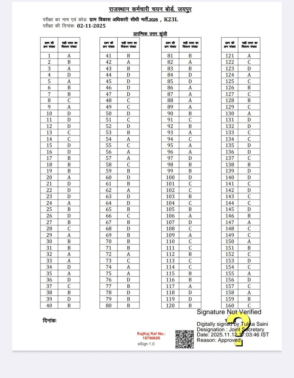 | Rajasthan VDO Answer Key 2025 | 12th November 2025 |